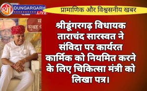 श्रीडूंगरगढ़ लाइव न्यूज़ 5 जून 2024 श्रीडूंगरगढ़।एनएचएम योजना के अंतर्गत कार्यरत लेखासहायक,डाटा एंट्री ऑपरेटर ,सेक्टर हेल्थ सुपरवाइजर खण्ड कार्यक्रम अधिकारी...