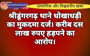 श्रीडूंगरगढ़ लाइव न्यूज़ 5 जून 2024 श्रीडूंगरगढ़ थाने में मारपीट करने, जान से मारने की धमकी देने के खिलाफ रावासर...
