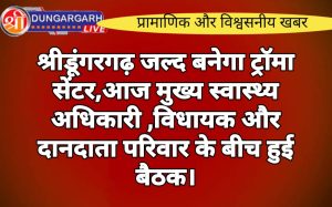 श्रीडूंगरगढ़ लाइव न्यूज़ 8 जून 2024 श्रीडूंगरगढ़ शहर के उपजिला स्वास्थ्य केन्द्र में एक बैठक क्षेत्रीय विधायक श्री ताराचंदजी सारस्वत,...