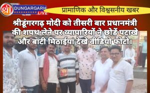 श्रीडूंगरगढ़ लाइव न्यूज़ 9 जून 2024 श्रीडूंगरगढ़ नरेंद्र मोदी को तीसरी बार प्रधानमंत्री पद की शपथ लेने पर व्यापारियों ने...