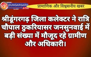 श्रीडूंगरगढ़ लाईव न्यूज 13 जून 2024 आज ठुकरियासर गांव में जिला कलेक्टर नम्रता वृष्णि द्वारा रात्रि चौपाल में जनसुनवाई की...
