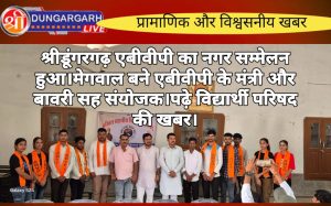 श्रीडूंगरगढ़ लाईव न्यूज 15 जुलाई 2024 अखिल भारतीय विद्यार्थी परिषद नगर इकाई श्रीडूंगरगढ़ मैं नगर सम्मेलन का आयोजन बाहेती भवन...