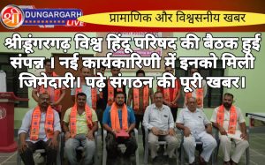 श्रीडूंगरगढ़ लाइव न्यूज़ 17 जुलाई 2024 श्रीडूंगरगढ़ आज विश्व हिंदू परिषद प्रखंड व नगर की बैठक रखी जिस में 2024की...