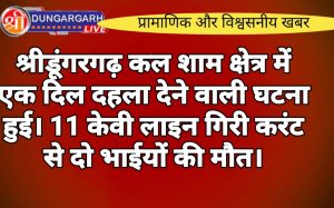 श्रीडूंगरगढ़ लाइव न्यूज़ 23 जुलाई 2024 सोमवार शाम आंधी-बारिश से टूटी 11 केवी की लाइन की चपेट में आकर 2...