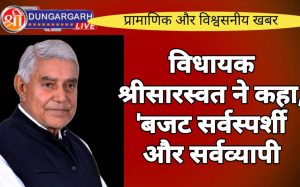 श्रीडूंगरगढ़ लाइव न्यूज़ 23 जुलाई2024 श्रीडूंगरगढ विधायक श्री ताराचंद सारस्वत ने मंगलवार को युवा एवं खेल मामलात तथा उद्योग पर...