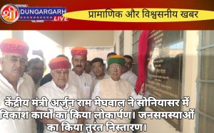 श्रीडूंगरगढ़ लाइव न्यूज़ 29 अगस्त 2024 केंद्रीय कानून मंत्री अर्जुनराम मेघवाल तोलियासर के बाद देर शाम सोनियासर गोदारान और सोनियासर...