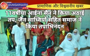 श्रीडूंगरगढ़ लाइव न्यूज़ 30 अगस्त 2024 श्रीडूंगरगढ़। कस्बे में सैन समाज की 11वर्षीया बालिका आईना सैन 8 की निराहार तपस्या...