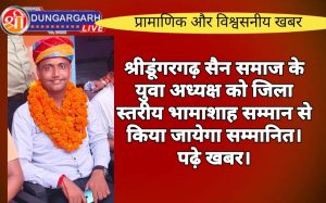 श्रीडूंगरगढ़ लाइव न्यूज़ 31 अगस्त 2024 श्रीडूंगरगढ़ से युवा चहरा मांगी लाल नाई को मिली भाजपा प्रदेश मॉनिटरिंग टोली में...