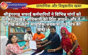 श्रीडूंगरगढ़ लाइव न्यूज़ 2 अगस्त 2024 जयपुर शहर सहित सम्पूर्ण राजस्थान प्रदेश में सफाई कर्मचारी सामूहिक अवकाश लेकर कार्य का...