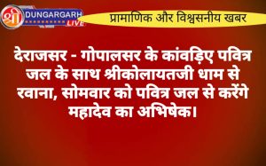 श्रीडूंगरगढ़ लाइव न्यूज़ 2 अगस्त 2024 देराजसर गांव के चल कांवड़िए कांवड़ यात्रा के बैनर तले करीब दो दर्जन कांवड़ियों...