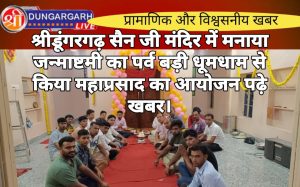 श्रीडूंगरगढ़ लाइव न्यूज़ 27 अगस्त 2024 कृष्ण जन्माष्टमी के मौके पर स्थानीय सैन जी मंदिर में सेन समाज के लोगों...