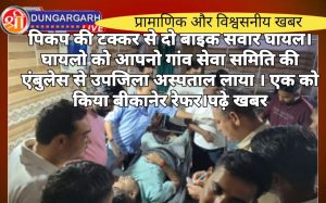 श्रीडूंगरगढ़ लाइव न्यूज़ 27 अगस्त 2024 श्रीडूंगरगढ़ क्षेत्र में सड़क पर हादसों पर हादसा हो रह है घायलों को यहां...