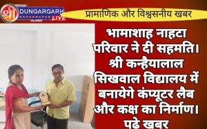 श्रीडूंगरगढ़ लाइव न्यूज़ 28 अगस्त 2024 कस्बे के NH11 स्थित श्री कन्हैयालाल सिखवाल राजकीय अंग्रेजी माध्यमिक विद्यालय, हनुमान धोरा में...