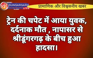 श्रीडूंगरगढ़ लाइव न्यूज़ 3 अगस्त 2024 ट्रेन की चपेट में आने से एक युवक की दर्दनाक मौत हो गई। सूत्रों...