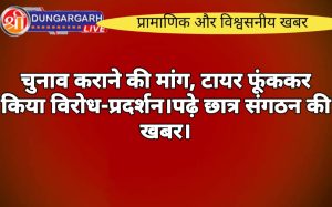 श्रीडूंगरगढ़ लाइव न्यूज़ 3 अगस्त 2024 छात्रसंघ चुनाव कराने की मांग को लेकर शनिवार को संभाग के सबसे बड़े कॉलेज...