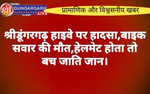 श्रीडूंगरगढ़ लाइव न्यूज़ 3 अगस्त 2024 नेशनल हाईवे पर सेरूणा थाना क्षेत्र में हुए हादसे में एक की मौत हो...