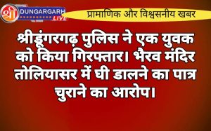 श्रीडूंगरगढ़ लाइव न्यूज़ 5 अगस्त 2024 विश्व प्रसिद्ध तोलियासर गांव स्थित काल भैरव मंदिर में पूजा के समय काम लेने...