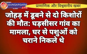 श्रीडूंगरगढ़ लाइव न्यूज़ 5 अगस्त 2024 घडसीसर गांव के जोहड़ में नहाते समय दो किशोरों की पानी डूबने से मौत...