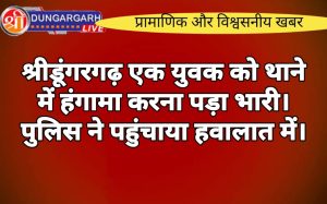 श्रीडूंगरगढ़ लाइव न्यूज़ 5 अगस्त 2024 श्रीडूंगरगढ़ थाने में एक विवाहिता द्वारा अपने पति के खिलाफ शिकायत दी गई जिसके...