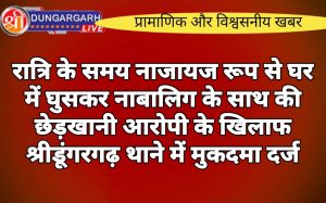 श्रीडूंगरगढ़ लाइव न्यूज़ 5 अगस्त 2024 श्रीडूंगरगढ़ थाना क्षेत्र के एक गांव में रात्रि के समय घर में घुसकर एक...