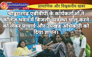 श्रीडूंगरगढ़ लाइव न्यूज़ 5 अगस्त 2024 आज राजकीय कन्या महाविद्यालय में एबीवीपी के नगर मंत्री लालचंद मेघवाल सहमंत्री रणजीत बावरी...