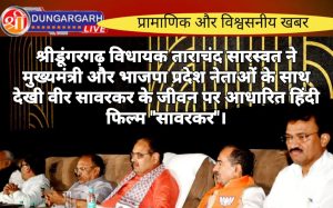 श्रीडूंगरगढ़ लाइव न्यूज़ 7 अगस्त 2024 जयपुर स्थित एंटरटेनमेंट पैराडाइज में वीर सावरकर के जीवन को रेखांकित करती हिन्दी फिल्म...