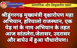 श्रीडूंगरगढ़ लाइव न्यूज़ 7 अगस्त 2024 मुख्यमंत्री वृक्षारोपण महा अभियान के अंतर्गत हरियाली तीज के अवसर पर “हरियालो राजस्थान” का...
