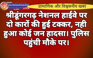 श्रीडूंगरगढ़ लाइव न्यूज़ 9 अगस्त 2024 क्षेत्र में लगातार सड़क दुर्घटनाएं बढ़ती जा रही है ।नेशनल हाईवे 11 पर खाखी...