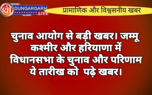 श्रीडूंगरगढ़ लाइव न्यूज़ 16 अगस्त 2024 चुनाव आयोग ने शुक्रवार, 16 अगस्त को जम्मू-कश्मीर और हरियाणा के विधानसभा चुनावों का...
