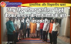 श्रीडूंगरगढ़ लाइव न्यूज़ 22 अगस्त 2024 विश्व हिंदू परिषद कार्यालय में एक बैठक का आयोजन किया गया इस बैठक में...