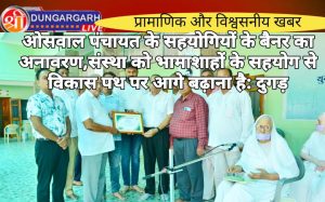 श्रीडूंगरगढ़ लाइव न्यूज़ 22 अगस्त 2024 श्रीडूंगरगढ़। कस्बे में जैन समाज की संस्था श्री ओसवाल पंचायत द्वारा संस्था के विकास...