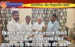 श्रीडूंगरगढ़ लाइव न्यूज़ 24 अगस्त 2024 आज नवनियुक्त जिलामहा मंत्री भाजपा किसान मोर्चा बीकानेर देहात रतनसिंह राठौड़ केउ एवं जिला...