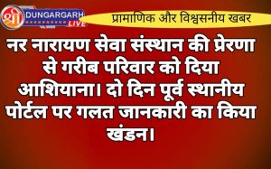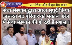 श्रीडूंगरगढ़ लाइव न्यूज़ 26 अगस्त 2024 नर नारायण सेवा संस्थान श्रीडूंगरगढ़ ने दिया घर बनाकर लाभार्थी परिवार ने जताया आभार...