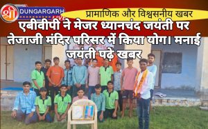 श्रीडूंगरगढ़ लाइव न्यूज़ 29 अगस्त 2024 आज अखिल भारतीय विद्यार्थी परिषद द्वारा खेल दिवस पर तेजाजी मंदिर में योग का...