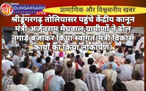 श्रीडूंगरगढ़ लाइव न्यूज़ 29 अगस्त 2024 श्रीडूंगरगढ़ क्षेत्र में केंद्रीय कानून मंत्री अर्जुनराम मेघवाल पहुंचे तोलियासर।ग्रामीणों ने ढोल नगाड़े बजाकर...