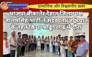 श्रीडूंगरगढ़ लाइव न्यूज़ 22 सितंबर 2024 भारतीय जनता पार्टी जिलाध्यक्ष जालमसिंह भाटी ने सदस्यता अभियान 2024 के अन्तर्गत श्रीडूंगरगढ़ में...