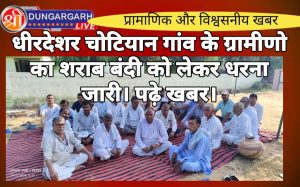 श्रीडूंगरगढ़ लाइव न्यूज़ 22 सितंबर 2024 गाँव में शराब ठेका बन्द करने की मांग को लेकर 10 सितम्बर से ग्रामीणों...