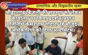 श्रीडूंगरगढ़ लाइव न्यूज़ 23 सितंबर 2024 आज मुख्य अभियंता जोधपुर विद्युत वितरण निगम लिमिटेड और जिला कलेक्टर कार्यालय के बाहर...