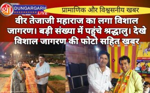 श्रीडूंगरगढ़ लाइव न्यूज़ 14 सितंबर 2024 शुक्रवार को श्री वीर तेजा धर्मशाला में श्री वीर तेजाजी महाराज का भव्य मेला...