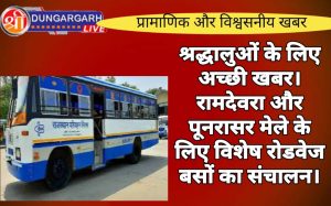 श्रीडूंगरगढ़ लाइव न्यूज़ 2 सितंबर 2024 रूणिचा के बाबा रामदेव मेले में जाने वाले श्रद्धालुओं के लिए अच्छी खबर है।...