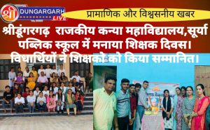 श्रीडूंगरगढ़ लाइव न्यूज़ 5 सितंबर 2024 शिक्षक दिवस के उपरांत आज शिक्षकों का किया ब्लॉक स्तरीय सम्मान।राकीय उच्च माध्यमिक विद्यालय...