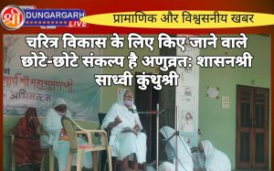 श्रीडूंगरगढ़ लाइव न्यूज़ 5 सितंबर 2024 श्रीडूंगरगढ़। पर्युषण महापर्व के पांचवें दिन अणुव्रत चेतना दिवस का आयोजन श्रीडूंगरगढ़ सेवा केंद्र...
