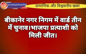 श्रीडूंगरगढ़ लाइव न्यूज़ 6 सितंबर 2024 नगर निगम के वार्ड तीन के उप चुनाव में भारतीय जनता पार्टी के प्रत्याशी...