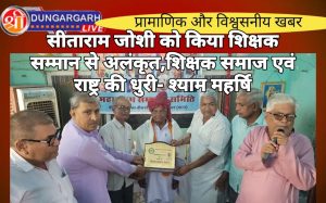 श्रीडूंगरगढ़ लाइव न्यूज़ 6 सितंबर 2024 महापुरुष समारोह समिति द्वारा शुक्रवार को शिक्षक सम्मान समारोह आयोजित किया गया। महाराणा प्रताप...