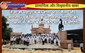 श्रीडूंगरगढ़ लाइव न्यूज़ 6 सितंबर 2024 श्री वीर तेजा धर्मशाला श्रीडूंगरगढ़ में समाज के प्रबुद्ध जनों की बैठक रखी गई...