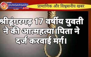 श्रीडूंगरगढ़ लाइव न्यूज़ 7 सितंबर 2024 शनिवार सुबह अपने घर के छत पर बने कमरे मे फांसी लगाकर एक 17...