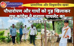 श्रीडूंगरगढ़ लाइव न्यूज़ 7 सितंबर 2024 श्रीडूंगरगढ़ युवाओं ने मनाया पायलेट का जन्मदिन। आज यूथ कांग्रेस के सभी कार्यकर्ताओं ने...