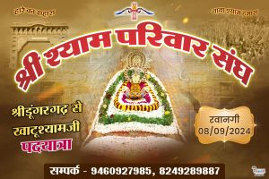 श्रीडूंगरगढ़ लाइव न्यूज़ 7 सितंबर 2024 श्याम भगतो के लिए बड़ी खबर। श्री श्याम परिवार संघ हर साल की भांति...