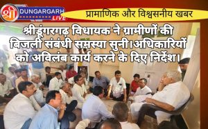श्रीडूंगरगढ़ लाइव न्यूज़ 16 सितंबर 2024 विधायक ताराचंद सारस्वत के बैरासर प्रवास के दौरान बैरासर के ग्रामीणों ने नवीन स्वीकृत...