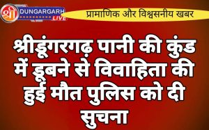 श्रीडूंगरगढ़ लाइव न्यूज़ 25 सितंबर 2024 श्रीडूंगरगढ़ के सेरूणा थाना क्षेत्र के बापेऊ गांव में पानी की कुंड में डूबने...